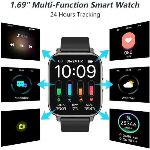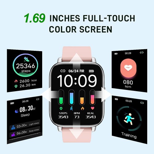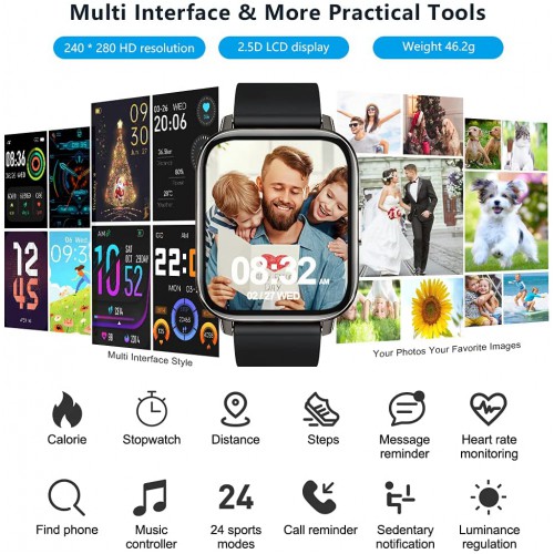 • 1.69 Inch Sensitive Full Touch Screen : Our smart watch use highly sensitive capacitive full square face 1.69inch IPS HD touch screen display with 240 * 280 resolution. Easily switch your look from one to another with the latest collection of watch faces, also you can customize the watch face and create your style. You can find great pleasure through smooth operational procedures, vivid information display and elegant interface.