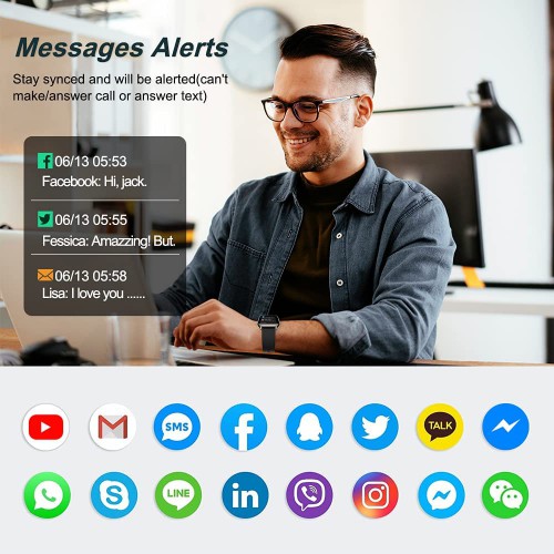 • Your Personal Smart AssistantпјљThis smartwatch includes more practical functions, activity tracker (pedometer, calories, distance), heart rate monitor, sleep tracker, 24 sports modes, call notifications, sms and app messages (Whatsapp, Facebook, Instagram ...), music and camera controller, sedentary reminders, alarm clock, stopwatch, weather, find your phone, and other functions to meet your daily needs.