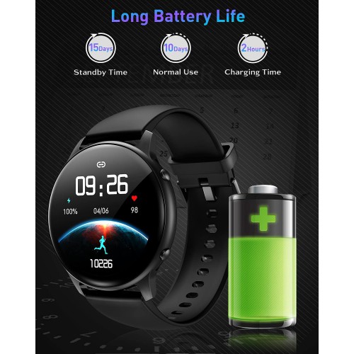 Smart Watches for Women/Men Fitness: 1.28 Inch Full Touch Screen, Activity Tracker Watch Compatible with iOS/Android, IP68 Waterproof Watch for Swimming, Heart Rate Monitor & Blood Oxygen (Black)